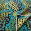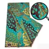 5.49 meter Luxurious Ankara Wax Print Fabric, 100%, African Blue Floral and Leaf Pattern, Golden Sand, Hand Wash Only, for Women'S Dresses and Apparel